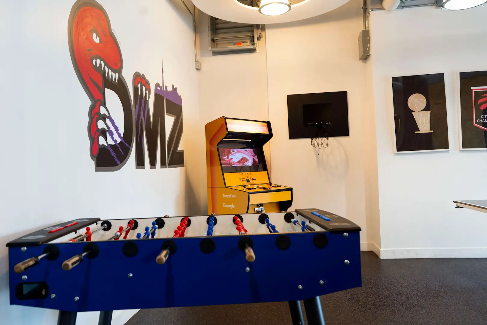 Enjoy DMZ’s Jurassic Park games room, relaxation room, massage chair, on-site showers & more.
