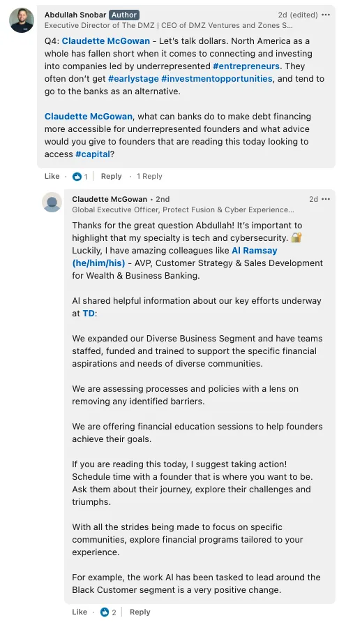 - Claudette McGowan, Global Executive Officer, TD