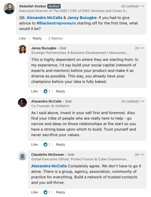 At the DMZ, we know that a strong tech ecosystem is one that fosters diverse perspectives and actively removes barriers for those hindered by systemic discrimination. We continue to actively work on leveling the playing field for everyone's entrepreneurial success. For more information on our Black Innovation Programs, please go to dmz.torontomu.ca/bip/